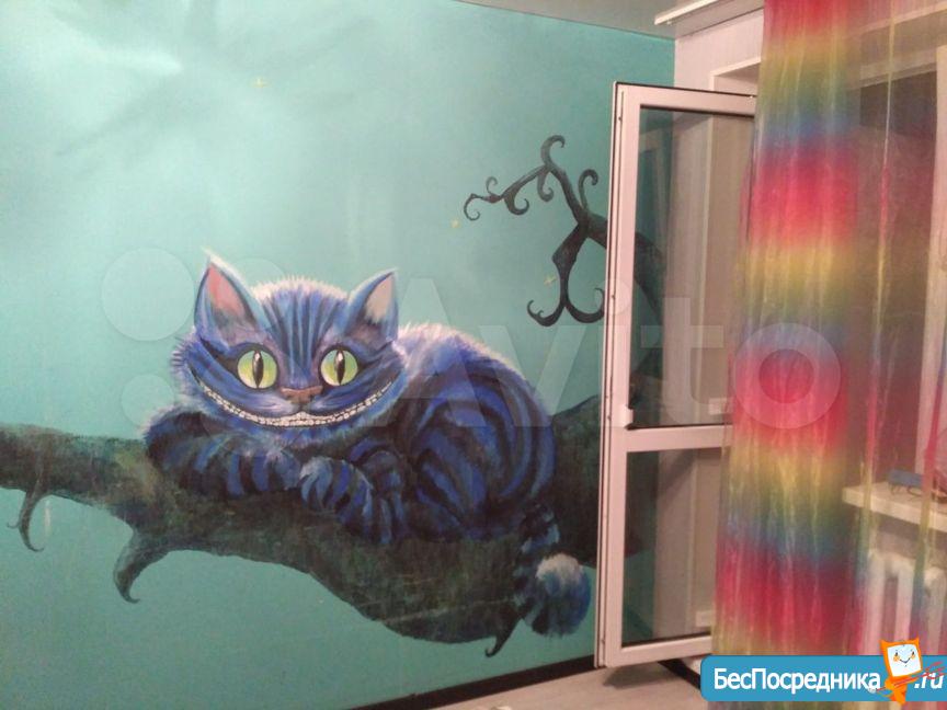 Спальня- (квадратная, 10квм) комод, компьютерный стол и стул, кот на стене)), двухъярусная кровать, лоджия (4квм)