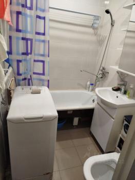 В квартире сделан косметический ремонт. Просторная комната обставлена необходимой мебелью, есть удобный диван и шкаф. На кухне также есть вся необходимая мебель и техника: холодильник, телевизор и стиральная машина. Санузел совмещенный, есть ванна.