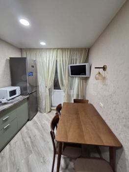 Уютная квартира в отличном состоянии. Не прокуренная, телевизор, микроволновка, холодильник, стиральная машина. В коридоре плитка с подогревом полов, в комнате ламинат.