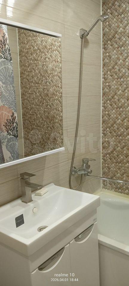 В квартире выполнен косметический ремонт. Просторная комната оснащена шкафами и диваном. Кухня 10 кв. м. оборудована гарнитуром,холодильником, плитой, вытяжкой, столом и стульями. Санузел совмещённый, с современной сантехникой и ванной.