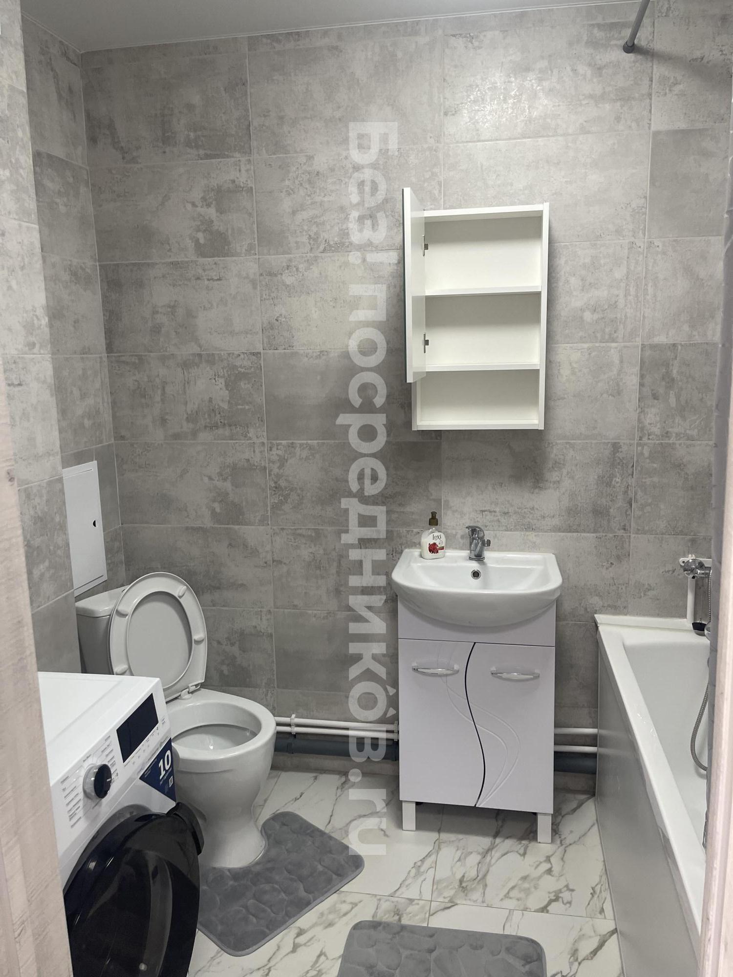 Ванная комната оснащена душевой кабиной и совмещена с санузлом. Окна выходят во двор, поэтому в квартире всегда тихо.