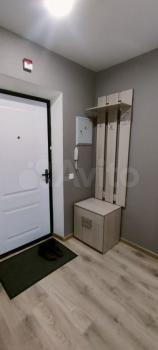 Из мебели в комнате все необходимое: раскладной диван, столик, шкаф и комод. Также для хранения прямо около комнаты есть небольшая гардеробная. В квартире тоже очень уютно, чувствуется комфорт благодаря хорошему ремонту.