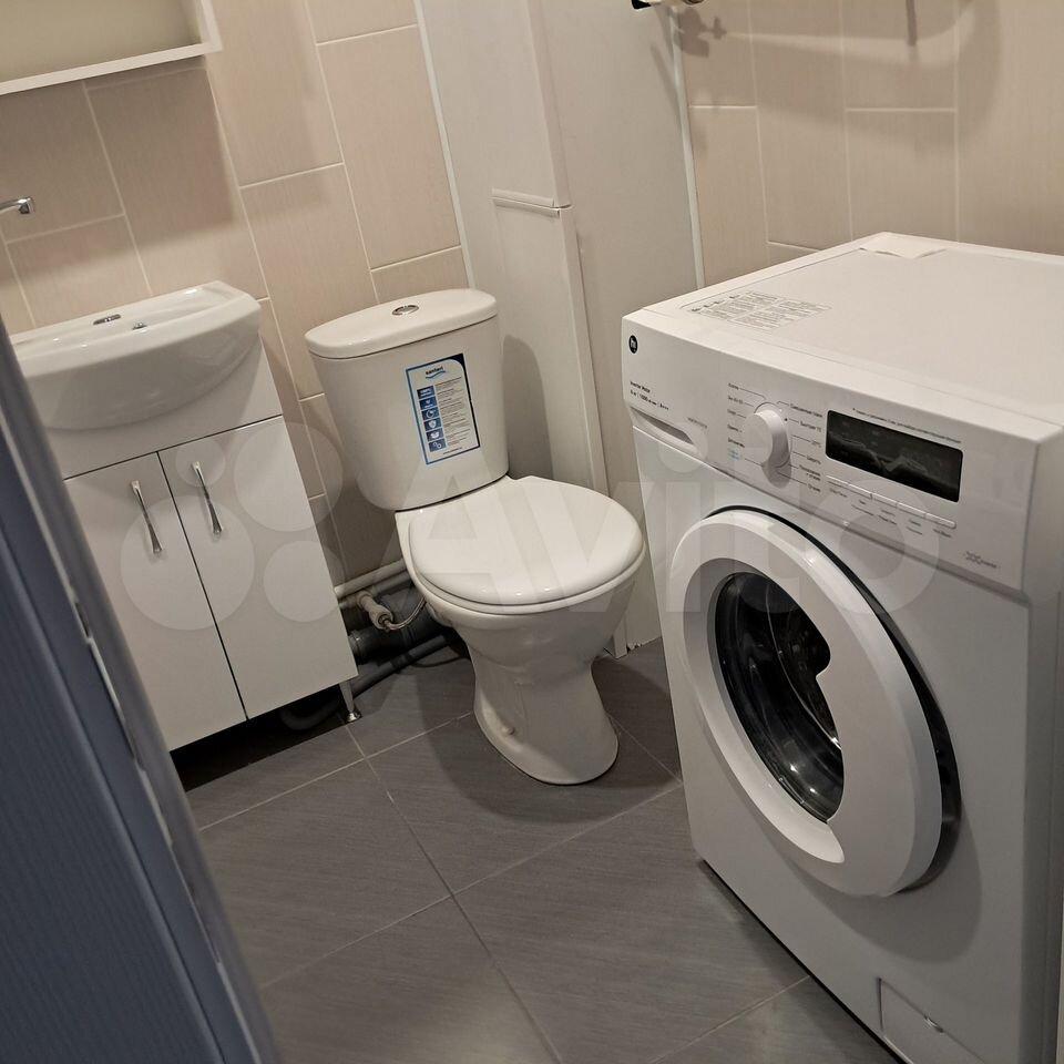 В квартире, техника: холодильник, стиральная машина, микроволновая печь.