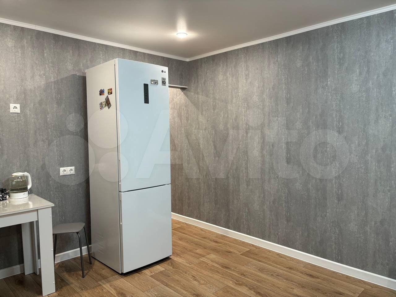 В квартире, техника: холодильник, стиральная машина, микроволновая печь.
