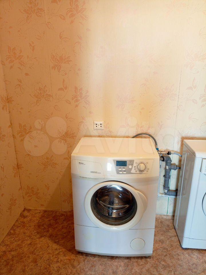 В комнате есть мебель, холодильник, стиральная машинка.