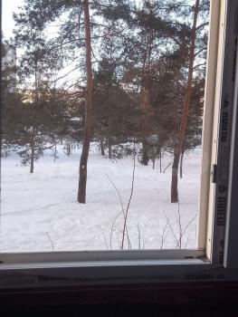 • Зал = 23 м² — светлый просторный, застеклённая лоджия отделана деревом. В зале установлен хороший телевизор.