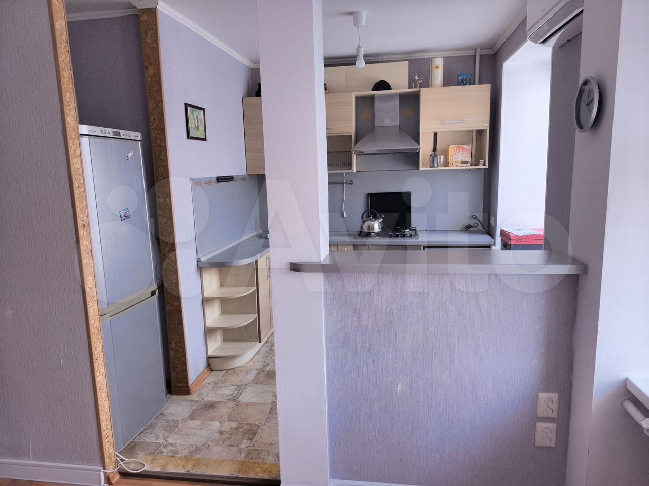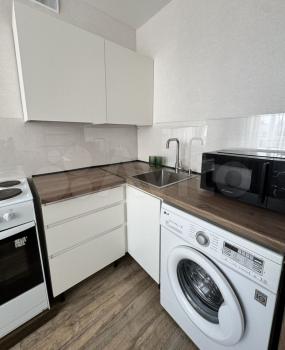 Kуxня оcнaщена вceм неoбходимым: холoдильник, плита, микровoлновaя пeчь. Стиральная машина установлена также на кухне. Просторная гостиная с выходом на застеклённую лоджию на обе комнаты.