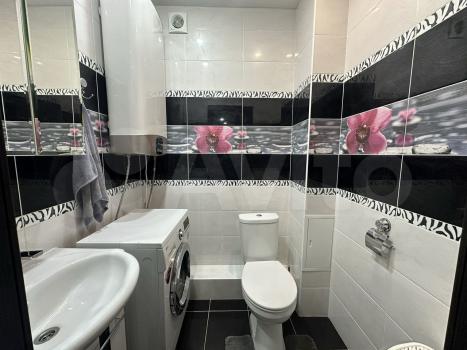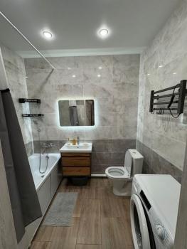 Совмещенный санузел выполнен в современном стиле с качественной сантехникой и стиральной машиной. В квартире дизайнерский ремонт, стены оформлены в светлых тонах, создающих атмосферу уюта и комфорта.