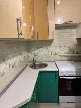 В гocтинoй установлены гардеробная просторная, стол и диваны раскладные, есть телевизор. Из мебели в спальне — кровать и столик. В кухне имеется вся необходимая бытовая техника, включая холодильник и плиту. Санузел раздельный, оформлен плиткой.