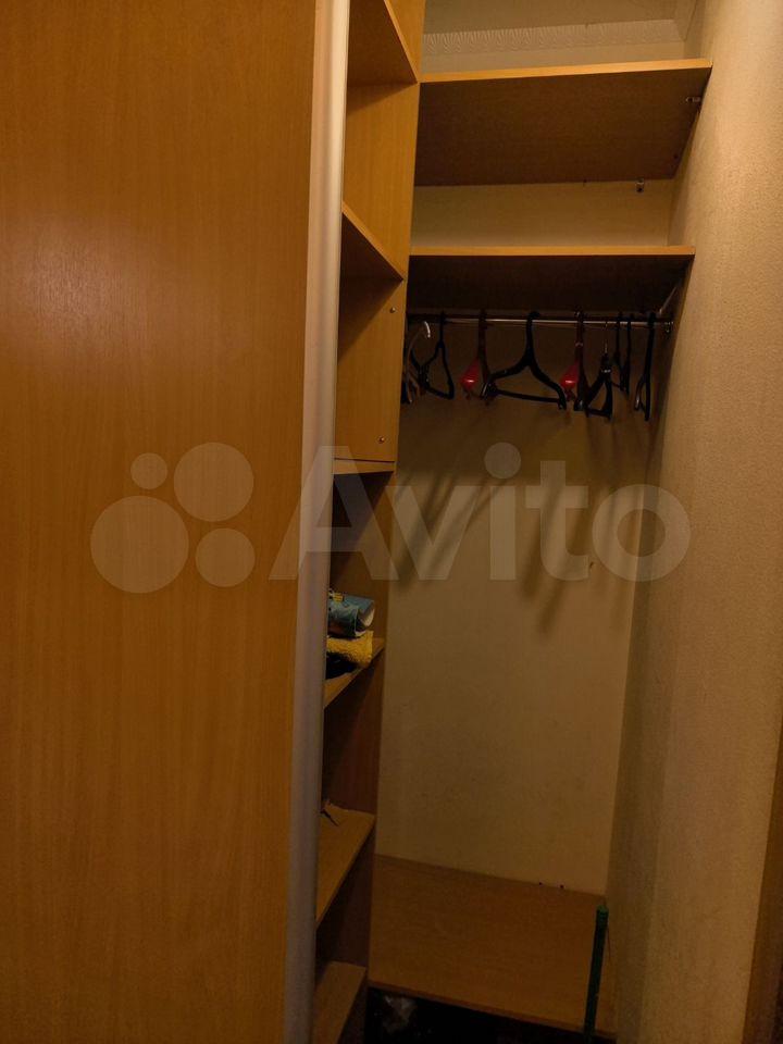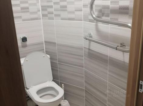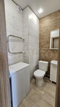 Санузел совмещённый, оформлен мозаикой, оборудован современной сантехникой. В прихожей установлен встроенный шкаф, а также есть гардеробная комната для удобного хранения вещей.