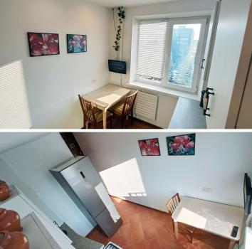 Квартира полностью готова к проживанию и обставлена необходимой мебелью как на кухне, так и в комнате. Здесь есть всё для вашего комфорта: холодильник, стиральная машина и интернет. Санузел совмещённый.