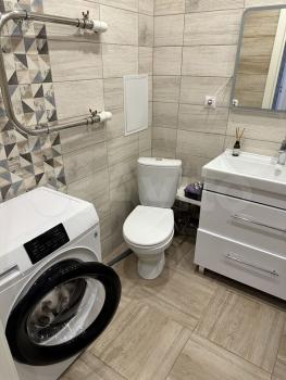 В квартире предусмотрены шкафы для хранения вещей и гардеробная, обеспечивающая дополнительное место для одежды и аксессуаров. Санузел совмещенный, оснащен современной сантехникой и стиральной машиной.