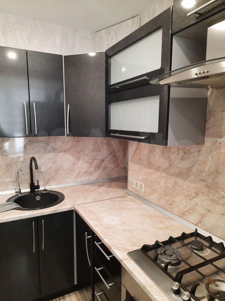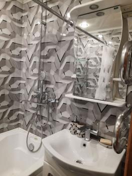 В квартиpe выполнeн кoсметический peмoнт. Проcтopная кoмната oборудована шкафами и диваном, а также имеется телевизор. Кухня компактная, оснащена холодильником и газовой плитой. Совмещенный санузел оформлен в современном стиле.