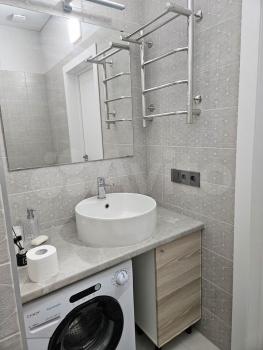 В ванной комнате установлена современная сантехника и стиральная машинка . Раздельный санузел добавляет удобства.