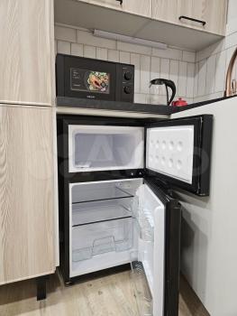 санузел - совмещённый, мебель - кухня, холодильник, плита, микроволновка, стиральная машина.