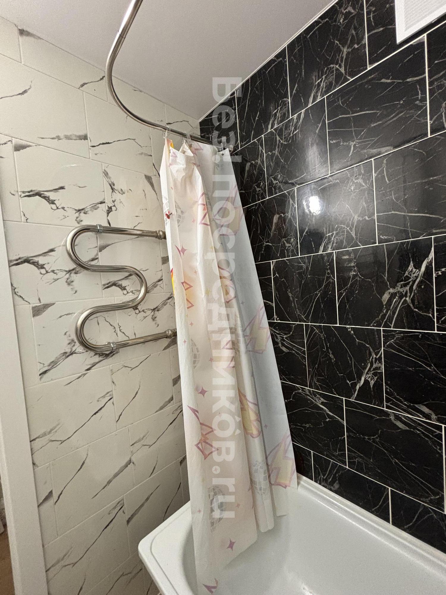 Санузел совмещённый, оформлен плиткой, имеется ванна.
