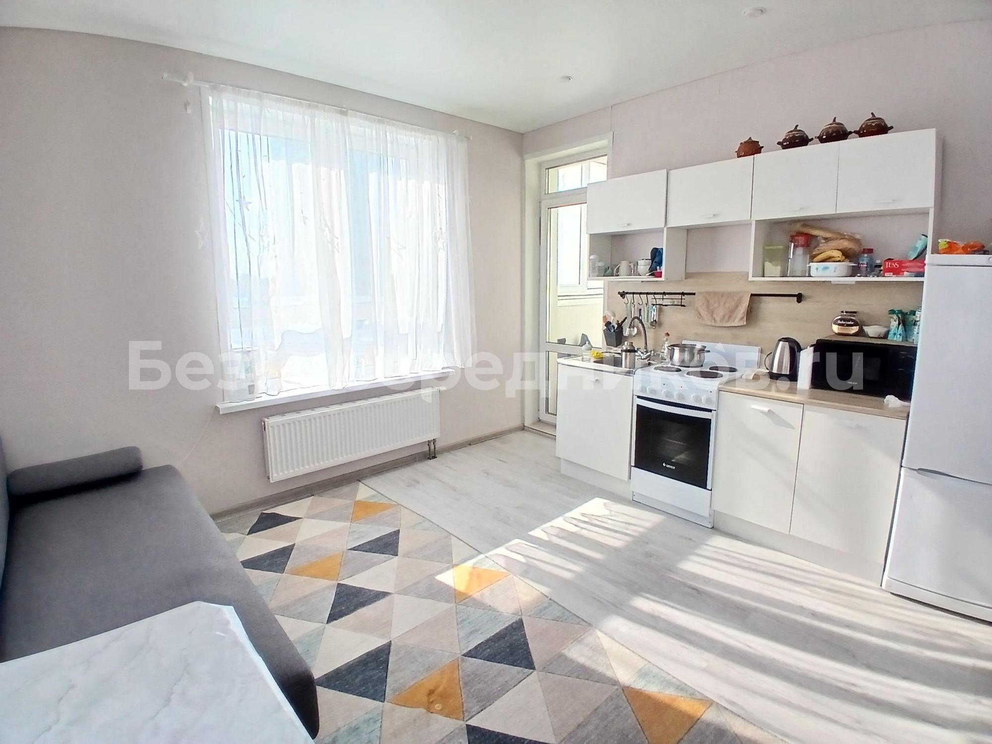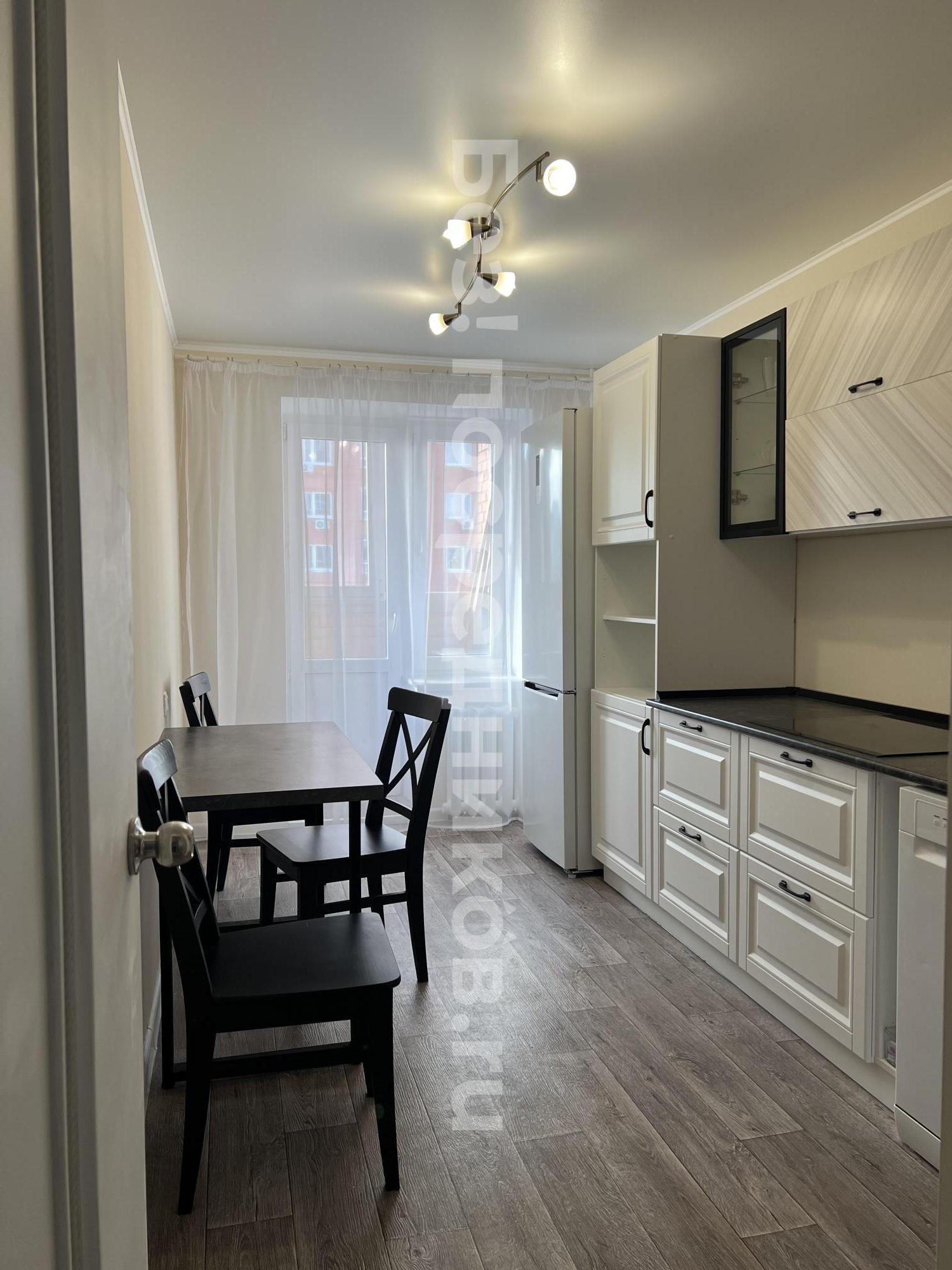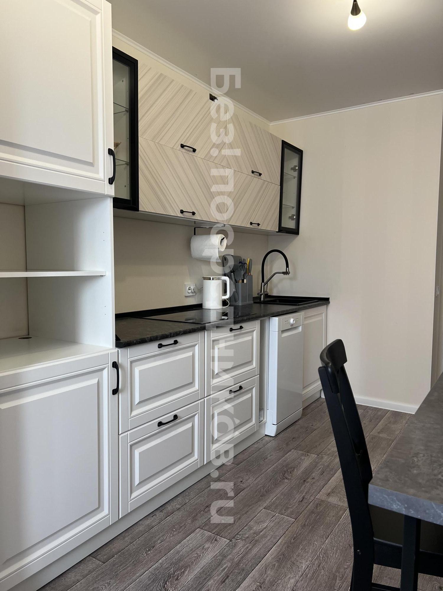 Квартира полностью меблирована и готова к проживанию. В кухонной зоне есть вся необходимая мебель и техника, включая холодильник, микроволновку, варочную панель и духовой шкаф. Имеется диван, в приходей расположен просторный шкаф для хранения вещей. В ванной комнате установлена душевая кабина, имеется стиральная машина. Лоджия добавляет дополнительное пространство для отдыха или хранения.