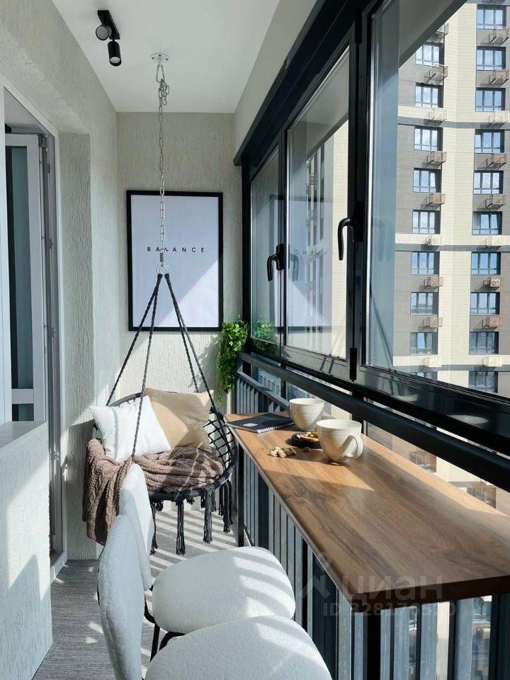 Панорамные окна и французский балкон, шкаф-купе в коридоре, в ванной душевая кабина и стиральная машина. Кухонная зона оборудована всей необходимой техникой.