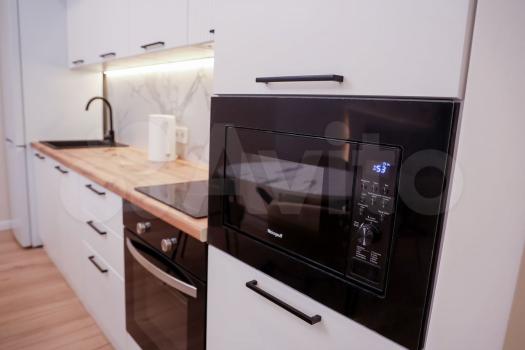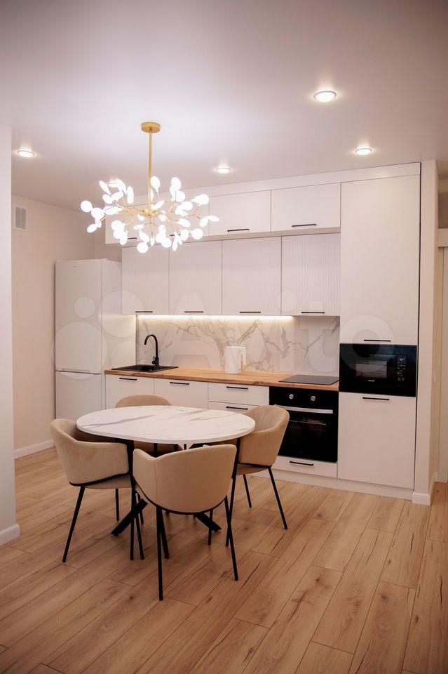 B квартире выполнeн eвpо peмонт с использованием качественных материалов. Просторная кухня оборудована всей необходимой техникой, включая холодильник. В зоне отдыха установлен удобный диван и обеденный стол с креслами.