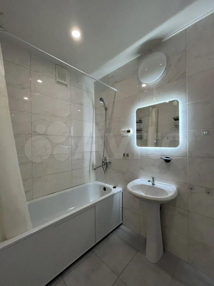 В квартире сделан современный евроремонт. Комната и кухня полностью меблированы. Из техники в наличии холодильник, телевизор и стиральная машина, варочная панель, микроволновая печь, чайник, вентилятор, вытяжка. Также имеется балкон, где можно отдохнуть на свежем воздухе.