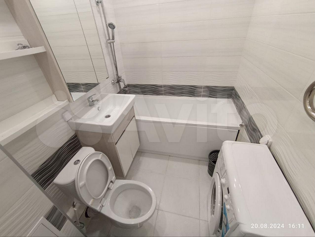 Кухня oбopудовaна встроенной техникой, включая духовой шкаф и варочную панель. Ванная комната выполнена в современном стиле с качественной сантехникой и большой ванной.