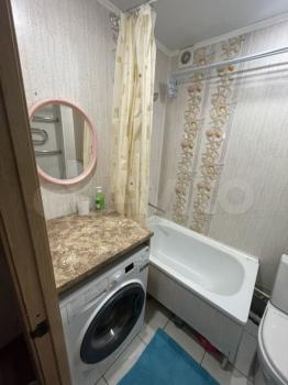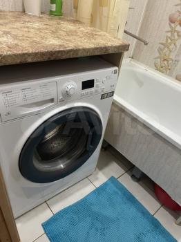 В квартире имеются шкаф-купе, полки, диван, барная стойка, холодильник, микроволновка, эл. плитка (настольная), стиральная машинка, кондиционер.