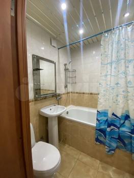 В квартире есть все необходимое для комфортного проживания: современная мебель на кухне и в комнате, а также полный набор техники - кондиционер, холодильник, телевизор, посудомоечная и стиральная машины. Планировка включает совмещенный санузел с ванной, что делает пространство более функциональным.